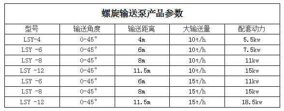 螺旋輸送泵產品參數